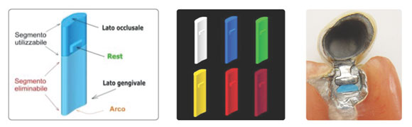 치관 외 어태치먼트는 지대치관 외부에 유지장치를 달아 지대치와 국소의치간의 기능운동을 조절하는 것으로 주로 후방연장 국소의치에 이용되고 있다. Cono-soft Attachment는 치관 외 반정밀형(semi-precision)으로 수직악간거리가 최소 3.5mm인 경우에도 적용할 수 있다. Cono-Soft attachment는 장착 후 장기적인 탈착으로 인한 유지력 저하가 발생될 때에는 6개의 칼라와 탄성력이 각각 다른 Arch-Friction-Soft(특수 나일론)로 교체하여 적정 유지력으로 이용할 수 있다(그림 1).
