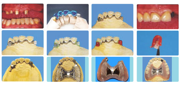 Cono-soft Attachment denture 제작과정을 살펴보면 첫째, male part를 수직고경에 맞게 크기를 조절하여 납형에 부착하여 주조한 다음 도재관을 제작하고 적합을 확인한다. 둘째, male part 원심면에 부착한 다음 패턴레진으로 캡을 제작한다. 셋째, 중합된 패턴레진 내부에 위치된 Dur-friction(extra-white)을 빼낸 다음 주조한다. 넷째, Metal framework와 덴쳐를 제작한 다음 유지력에 따라 Arch-Friction-Soft를 끼워주면 된다(그림 2).