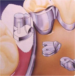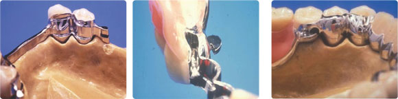 방전 가공법은 펄스 전원에 의한 마이크론 방전을 발생시켜 금속을 용해 비산하는 응용함으로써 치과기공사는 어태치먼트의 1차 구조체와 2차 구조체를 1공정으로 제작할 수가 있으며, 제작된 2개의 주조체는 정확하게 적합한다. SAE Riegel 95는 선회축의 축수를 측방에서 형성하는 선회식 리겔로써 티탄제의 판 스프링을 나사로 고정해 적절한 정도의 friction을 줄 수 있다. 따라서 장기적으로 보철물의 수명을 연장할 수 있는 시스템이라고 할 수 있다(그림 2, 3).