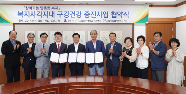 강릉원주치대병원(병원장 엄홍식)은 지난 4일 강릉시(시장 최명희)와 취약계층의 구강건강 증진을 위한 상호협력을 약속했다.
