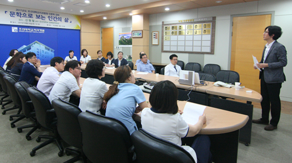 조선치대병원(병원장 김수관)이 지난 5일 3층 다산실서 인문학 강의를 개최하였다. 이날 연자로는 조선대 문예창작과 신형철 교수가 나서 ‘문학으로 보는 인간의 삶’을 주제로 강연을 펼쳤다.