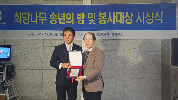 조선대치과병원(병원장 김수관)이 지난 15일 광주 동구 KT호남센터서 열린 사단법인 희망나무 ‘2017 봉사대상 시상식’에서 해외의료봉사 활동을 인정받아 단체부문 봉사대상을 수상하였다.