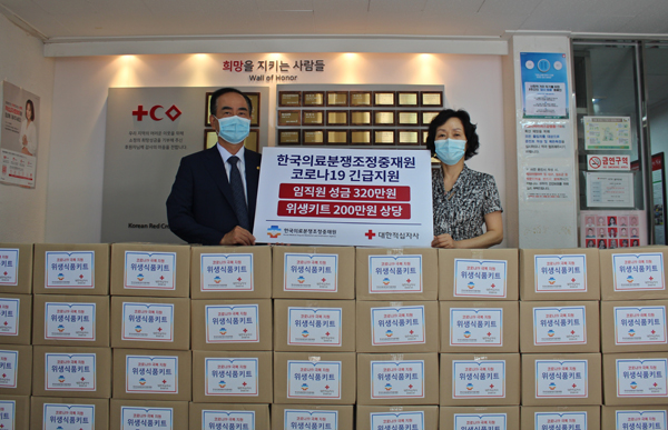 의료중재원 임직원들은 코로나19 극복 지원의 일환으로, 십시일반 기부금품(성금 320만원, 물품 200만원 상당)을 마련했다.