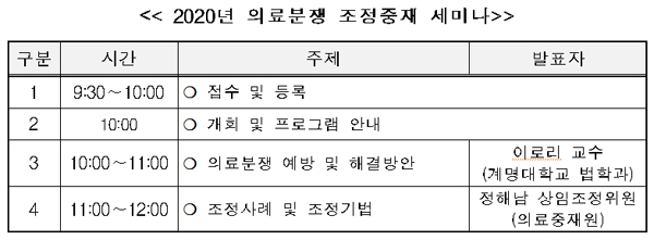 한국의료분쟁조정중재원(원장 윤정석)은 10월 21일 대한병원협회가 주최하는 국제병원의료산업박람회에서 ‘의료분쟁 조정중재 세미나’를 개최한다. 박람회 참석자들을 대상으로 진행될 이번 세미나는 ‘의료분쟁 예방과 해결 방안’, ‘조정사례 및 조정기법’을 다룰 예정이다. 세미나 사전등록은 ‘국제병원의료산업박람회’ 홈페이지(http://khospital.org)를 통해 가능하다.