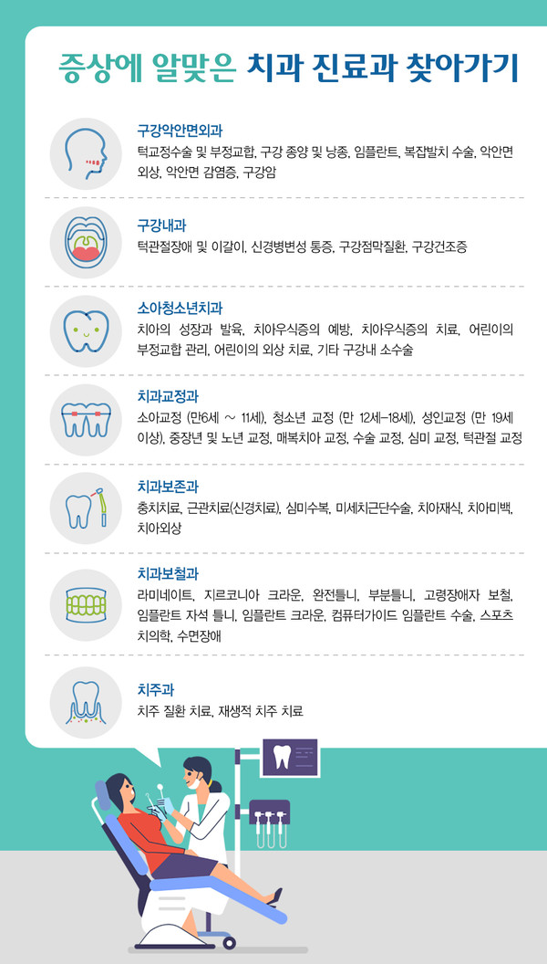 | 동네를 거닐다 보면 많은 치과를 발견하게 된다. 언뜻 보면 다 똑같은 치과로 생각할 수 있지만, 치과도 다양한 진료과가 있다. 치과는 진료과별로 치아 및 구강, 얼굴 전체 부위의 질병과 관련된 진단-예방-치료 등 폭넓은 진료를 통해 국민구강건강증진에 기여하고 있다. |