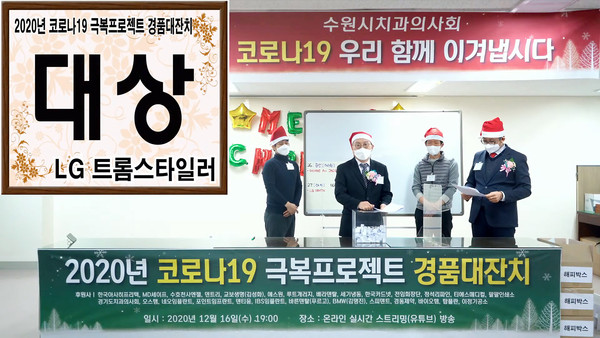 수원시치과의사회(회장 위현철)는 지난 16일 ‘코로나19 극복프로젝트 경품 대잔치’ 2020 온라인 송년회를 마쳤다. 이날 온라인 송년회는 오후 7시부터 유튜브 방송으로 생중계 됐다.
