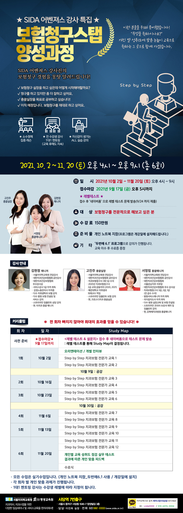 서울치의학교육원(SIDA)이 ‘보험청구스탭 양성과정’을 개설한다.
