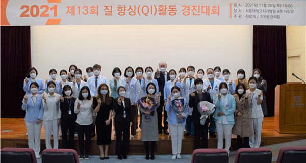 서울대치과병원(병원장 구영)이 지난 달 25일 8층 대강당서 ‘2021년도 질 향상(QI) 활동 경진대회’를 개최하였다. 이날 대회에는 주요 보직자와 심사위원, 각 팀리더, 발표자 등 40명 이내의 인원이 참석했다.