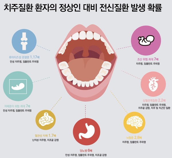 하지만 이는 치료를 위한 골든타임을 놓치게 되어 치아 상실(발치)로 이어지기도 한다. 더욱이 치주질환을 포함한 구강질환은 당뇨, 고혈압, 치매 등 전신질환과 상호 연관성이 있음이 많은 연구 결과를 통해 뒷받침되고 있기에 건강한 삶을 위한 전신질환의 예방을 위해서도 구강 관리의 필요성이 재차 강조된다.