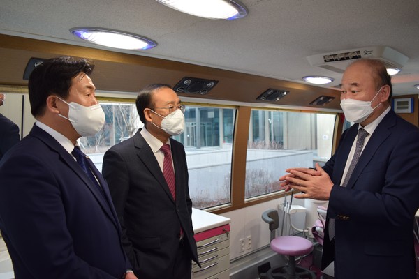 협약식 이후에는 서울대치과병원의 ‘찾아가는 치과서비스’를 위한 이동치과 진료버스를 둘러보고, 구강 공공의료 안전망 구축의 필요성을 직접 확인해보는 시간을 가졌다.