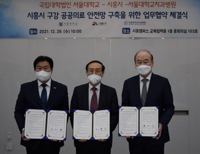 서울대치과병원(병원장 구영)과 서울대(총장 오세정), 시흥시(시장 임병택)가 지난 29일 서울대 시흥캠퍼스 교육협력동서 ‘구강 공공의료 안전망 구축’을 위한 협약을 체결했다.