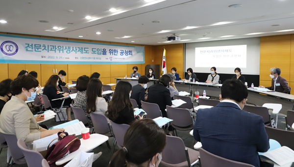 대한치과위생사협회(회장 황윤숙)가 지난 24일 신흥연수센터 11층 회의실서 ‘전문치과위생사제도 도입을 위한 공청회’를 개최했다.