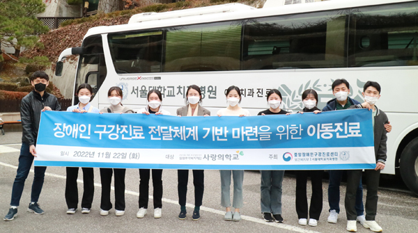 서울대치과병원 중앙장애인구강진료센터(센터장 금기연)가 지난 22일 경기도 성남시 소재 할렐루야교회 산하 ‘사랑의 학교’를 찾아 장애인 34명 대상으로 이동진료를 실시했다.