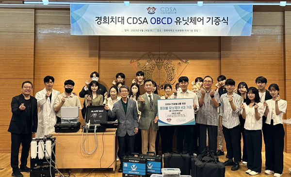 경희기독치과학생봉사단(CDSA) 동문회가 지난 24일 창립 50주년을 맞아 3천만원 상당의 이동식 유니트체어 4대를 경희대치과병원에 기증했다.