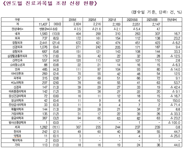 반면 최근 5년간 조정개시율은 65.8%로 나타났으며, 2023년 조정개시율은 66.8%로 5년간 조정개시율 대비 1.0% 높았다.