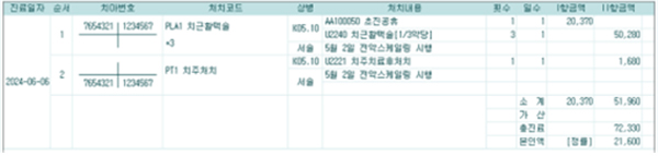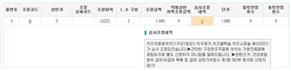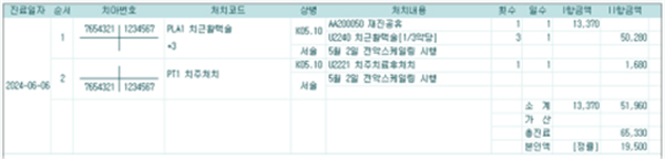 세번째로 청구내역을 살펴보니 상악은 치근활택술, 하악은 치주후처치, 내역설명까지 되어있습니다.
