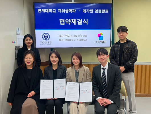 연세대 치위생학과(학과장 한선영)와 메가젠임플란트(대표 박광범)가 11월 21일 업무협약을 체결했다.