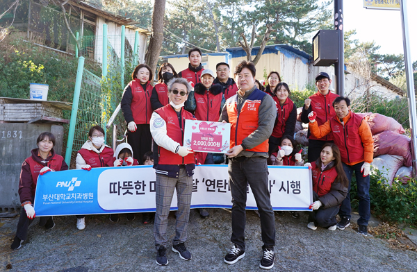 부산대치과병원(병원장 김현철)이 지난 14일 지역주민의 따뜻한 겨울나기를 위해 ‘연탄 배달봉사’를 실시했다.