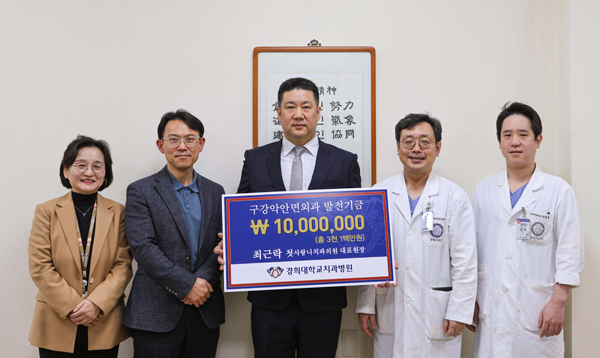 최근락 원장은 “모교인 경희대치과병원 구강악안면외과 발전을 위해 ‘함께 오래 멀리 달리자’는 자세로 나눔을 실천하고 싶다”고 기부 배경을 설명했다.