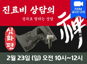 치과 온오프라인 교육 플랫폼 덴탈브레인이 2월 23일 오전 10시부터 2시간 동안 치과의사와 스탭 대상으로 ‘진료비 상담의 신-심화과정’ 주제로 온라인 강의를 진행한다.
