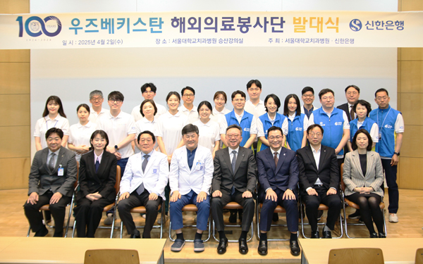 서울대치과병원(병원장 이용무)과 신한은행(은행장 정상혁)이 지난 2일 서울대치과병원 승산강의실서 ‘우즈베키스탄 의료봉사단 발대식’을 개최했다.