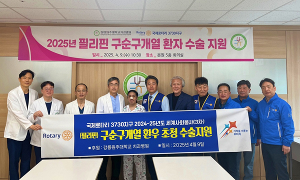 강릉원주대치과병원(병원장 박찬진)이 국제로타리 3730지구(총재 최만집)와 협력하여 지난 10일 필리핀 구순구개열 환자 린드세이씨를 국내로 초청해 무료수술을 진행했다.