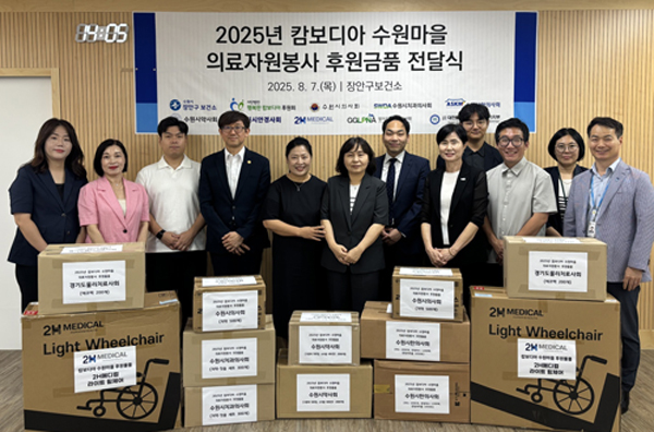 경기도 수원시치과의사회(회장 민봉기)가 지난 7일 장안구보건소서 열린 ‘2025년 캄보디아 수원마을 의료자원봉사 후원물품 전달식’에 참여하여 칫솔·치약세트 300개를 전달했다.