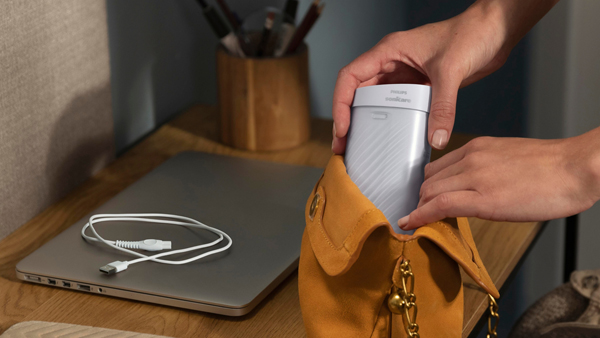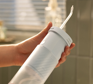 ‘콤팩트플로서’는 현재 필립스 소닉케어 구강세정기 라인업 중 가장 작은 크기로, 손가방이나 파우치에 손쉽게 휴대할 수 있다. 본체와 물통은 슬라이드 방식으로 결합 및 분리되어 사용하지 않을 때 부피를 줄일 수 있고, 노즐은 본체 상단 주입구 안에 넣어 별도 케이스 없이도 위생적으로 보관할 수 있다.