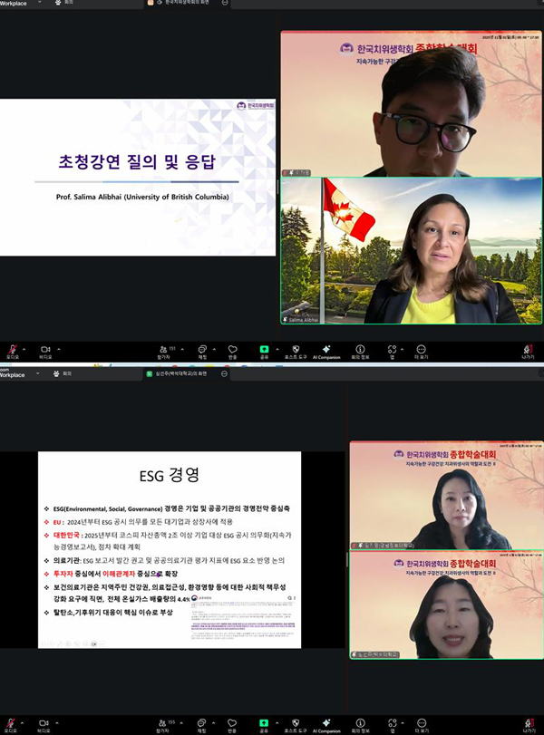 해외연자 초청강연은 캐나다 브리티시컬럼비아대 Salima Alibhai 교수가 맡아 ‘지속가능한 구강건강과 치과위생사의 역할’ 주제로 국제적 관점을 제시하며 참가자들과 열띤 질의응답도 가졌다.