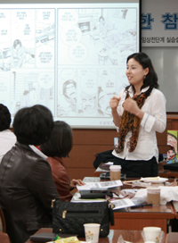 김선경 대표는 OBM(Open, Believe, Move) 강의기법에 대해 언급하며 학습자의 마음에 노크하는 방법에 대해 다양한 학습유형을 제시, 참석자들로부터 인기를 끌었다. 특히 고객의 입장에서 생각할 수 있는 마인드를 쌓기 위해 만화를 이용한 수업방식, 참여 수업방식 등 딱딱한 수업이 아닌 학생들에게 더욱 적극적으로 다가갈 수 있는 친화력 있는 수업을 선보여 많은 교수들이 자문을 구했다는 후문이 있을 정도.