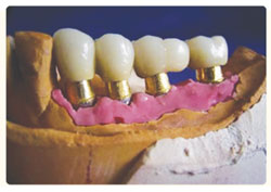 임플란트 보철물에서 전기 성형법(GES)의 특징은 적합 정밀성이라고 할 수 있으며, 이로 인한 적합이 불량한 상부구조와의 적합성을 양호하게 해줄 수 있는 장점을 가지고 있다. 그리고 치과기공작업의 간소화를 들 수 있는데 임플란트는 기성 임플란트 analog 위에 electroforming crown을 직접 제작할 수 있으므로 복잡하고 다양한 lost wax technique에 의한 주조법을 이용할 필요 없이 변연부의 적합 정밀도를 쉽게 얻을 수 있다(그림 1).